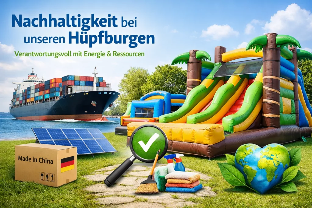 Unvergessliche Events und verantwortungsvolles Handeln müssen sich nicht ausschließen. Deshalb achten wir darauf, unsere Hüpfburgen und Eventmodule sorgfältig zu pflegen, regelmäßig zu kontrollieren und möglichst lange im Einsatz zu halten.